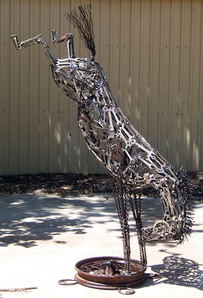 Terry JonesTMJ Creative Sculptures | Jewett, Texas National award winning artist Terry Jones was born in Pasadena TX, and moved to Jewett TX in 1979. Beginning with the creation of metal trucks and tractors, Terry transitioned into making fish & animals. His art ranges from abstract & whimsical to the monumental. Terry works mainly with found objects from our past, turning items lost to time into treasures for the future. He works with local law enforcement officers, using his creative process to transform confiscated weapons into works of art. Terry's work is featured in various magazine and television spotlights throughout Texas, as well as in private collections, city parks, art galleries and museums throughout America.