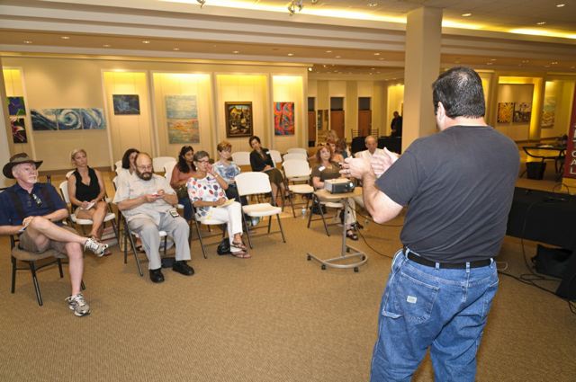 The Artists' Roundtable serves as a casual and fun forum for sharing, meeting, mingling and creating a dialogue with fellow APT artist's and other art insiders. This is about artists nurturing artists ~ We encourage you to bring photos on your preferred device or laptop and share your latest work, recent endeavors, websites, or questions to pose for our creative brainstorming sessions. Artful camaraderie, wine and food for thought, body and mind at Times Ten Cellar. Free for APT Artist Members, Patrons and their guests, with menu and cash bar available. Please stay tuned for upcoming date and time of our next seasonal Artist's Roundtable... Sunday August 26th, 3 - 5pm, 2012 Saturday June 30th, 4 - 6pm, 2012 Times Ten Cellers6324 Prospect Ave, Dallas, TX 75214 View Map Get Directions TO TWEET OR NOT TO TWEETOn Saturday July 14th, Giovanni Gallucci spoke on the In's and out's of social media marketing as it applies to visual fine arts at Gallery at Midtown in Dallas, TX, and explained why today's contemporary fine artists need to embrace social media marketing and why it's it critical to your success in today's fine art market, and how to develop a social media marketing strategy to drive collectors, gallerists and dealers to notice you. He discussed the best outlets for visual fine arts, and how to manage your day-to-day promotions/blogging and stay organized with social media. Giovanni is a recovering web programmer turned online brand strategist and internet journeyman who develops strategy for online marketing and audience development for forward-thinking clients in music, media, faith, film, TV, tech & those interested in breaking new ground online. He is available for questions at www.liveloudtexas.com.